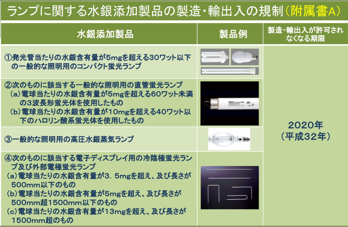 - 一般照明用※1の高圧水銀ランプの製造・輸出・輸入を2021年以降禁止